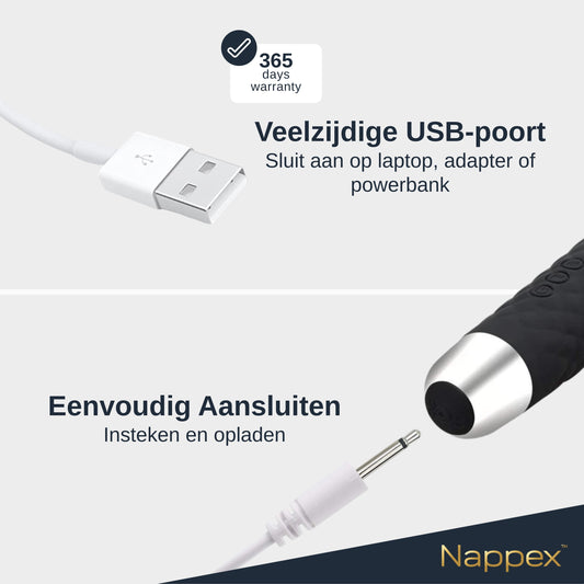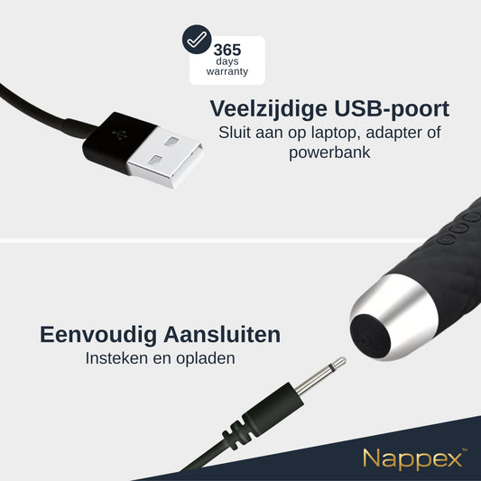 Batterijen en opladers: zorg ervoor dat uw speelgoed altijd opgeladen en klaar voor gebruik is met ons assortiment batterijen en opladers, inclusief opties die compatibel zijn met verschillende Nappex-producten.